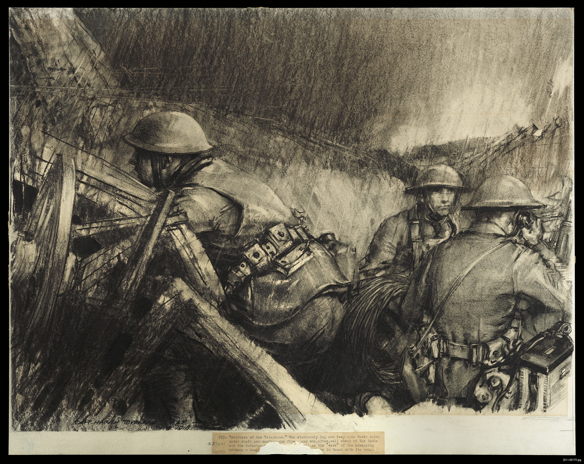 Soldiers of the Telephone by Harry Everett Townsend, Charcoal on paper, 1918