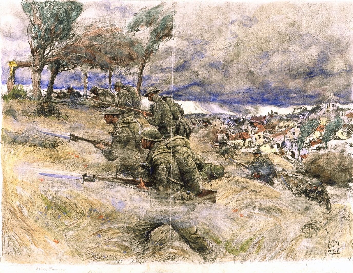 Battle of Marne by Harvey Thomas Dunn, Watercolor and pastel on paper, 1918