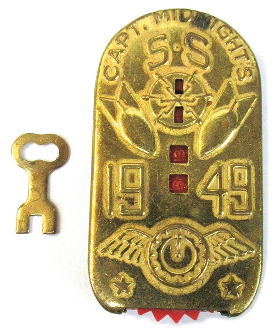 Few promotional tie-ins were more coveted than a Captain Midnight decoder badge, such as this 1949 Key-O-Matic Code-O-Graph. (Courtesy Larry Zdeb)