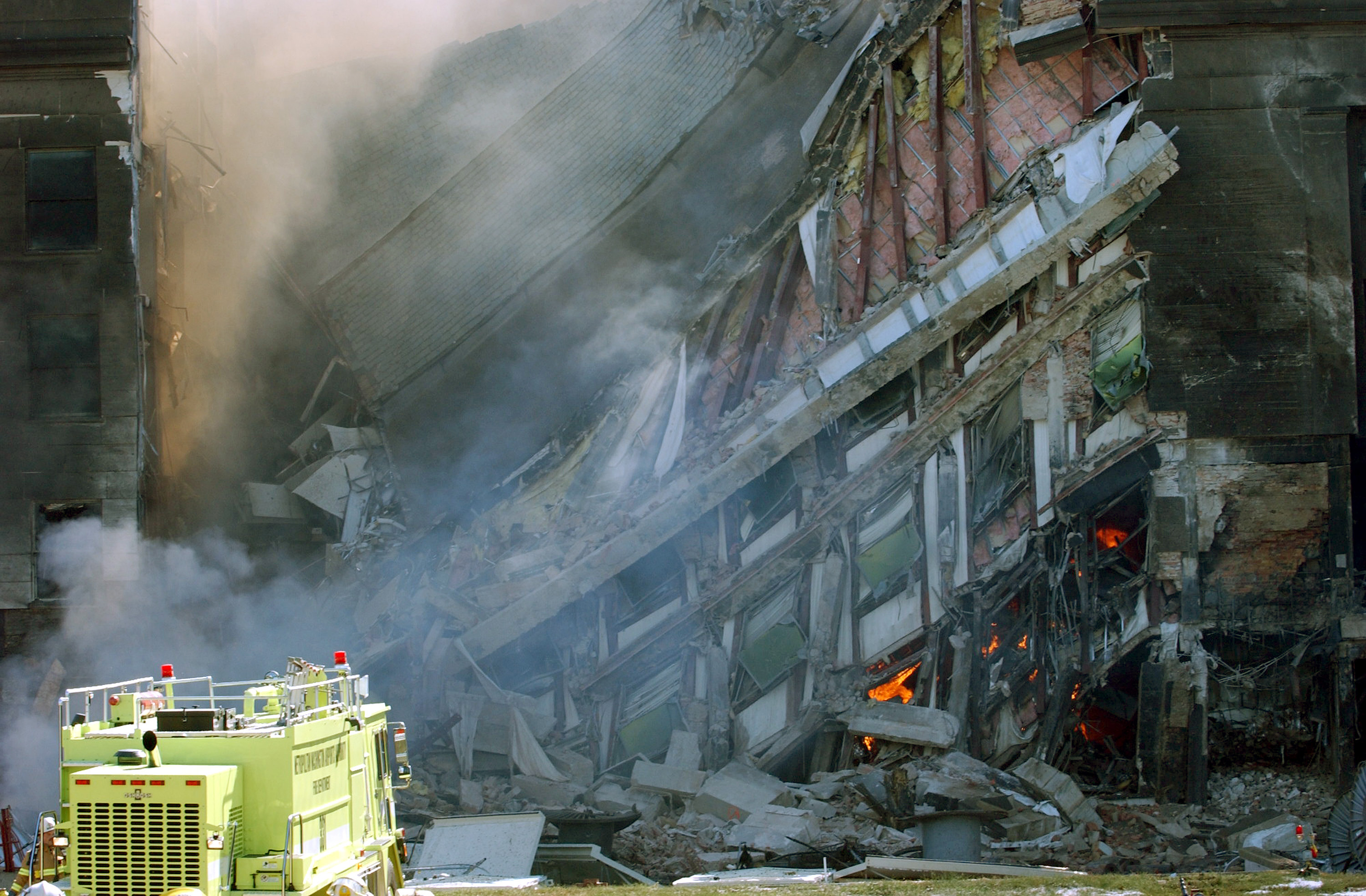 Foam 331, shortly after the floors above the impact site collapsed. (National Archives and Records Administration, RG 330, DM-SD-02-03899)