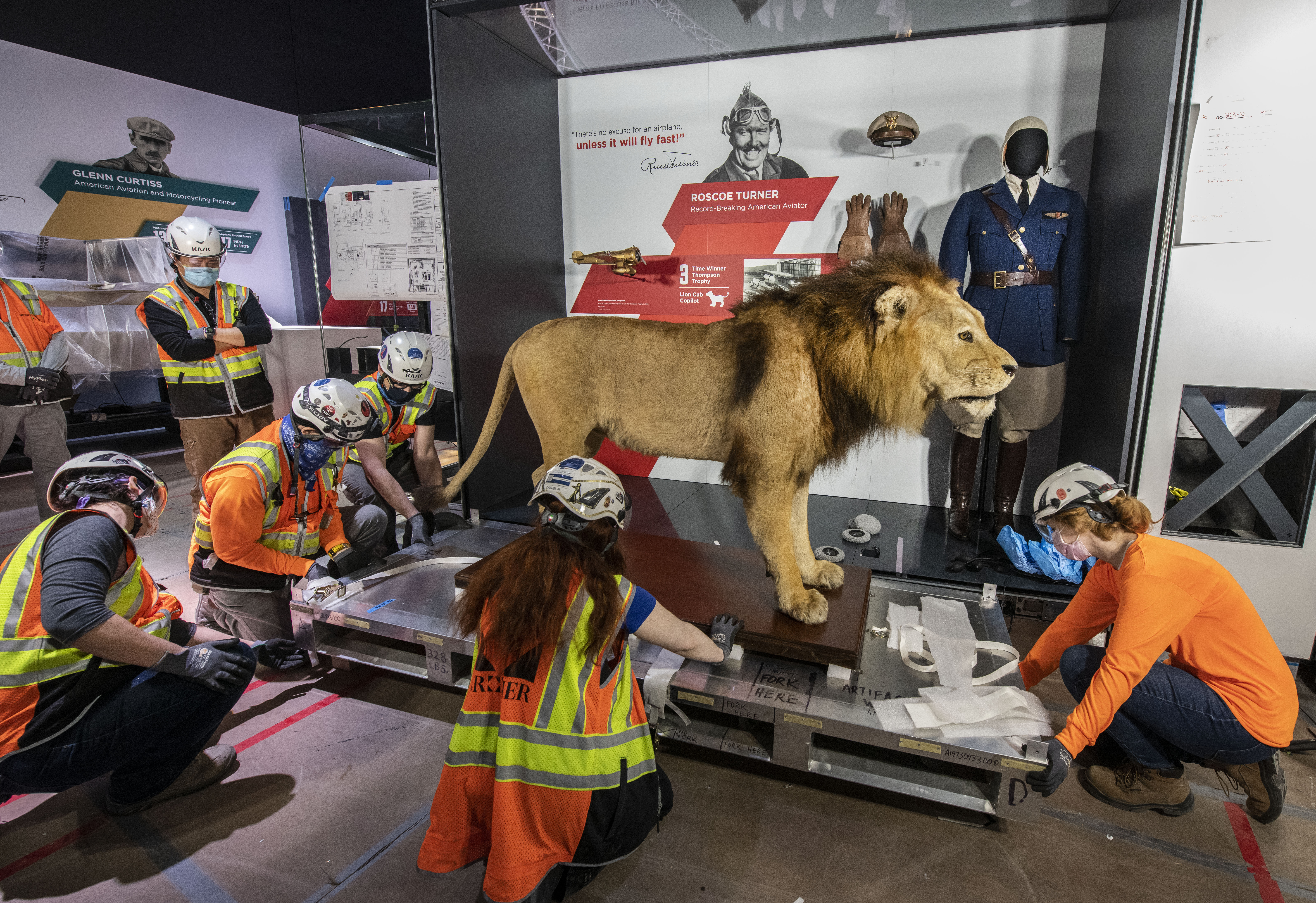 Museum specialists install Gilmore in the Nation of Speed gallery.