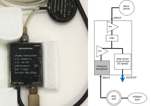 The microphone (top) and its unique signal conditioner specially engineered to read in both sound and pressure. The diagram is a representation of its internal mechanisms.