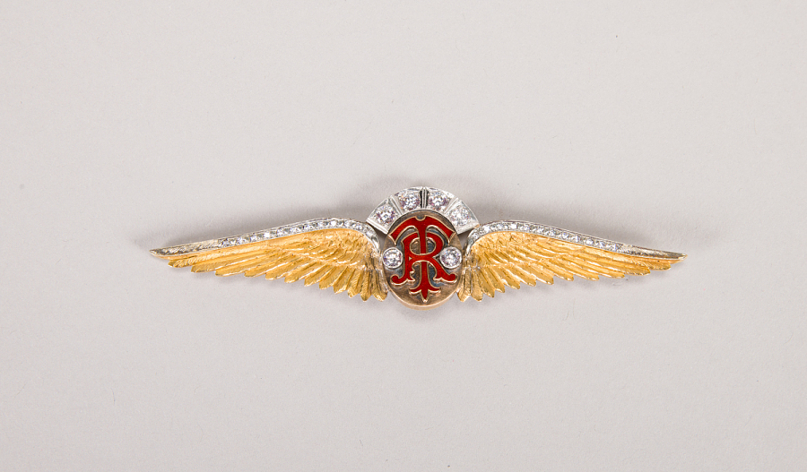 Roscoe Turner’s custom civilian pilot’s wings featured his personal “RT” insignia and were designed and worn by Turner himself. Image courtesy of the Smithsonian Institution.