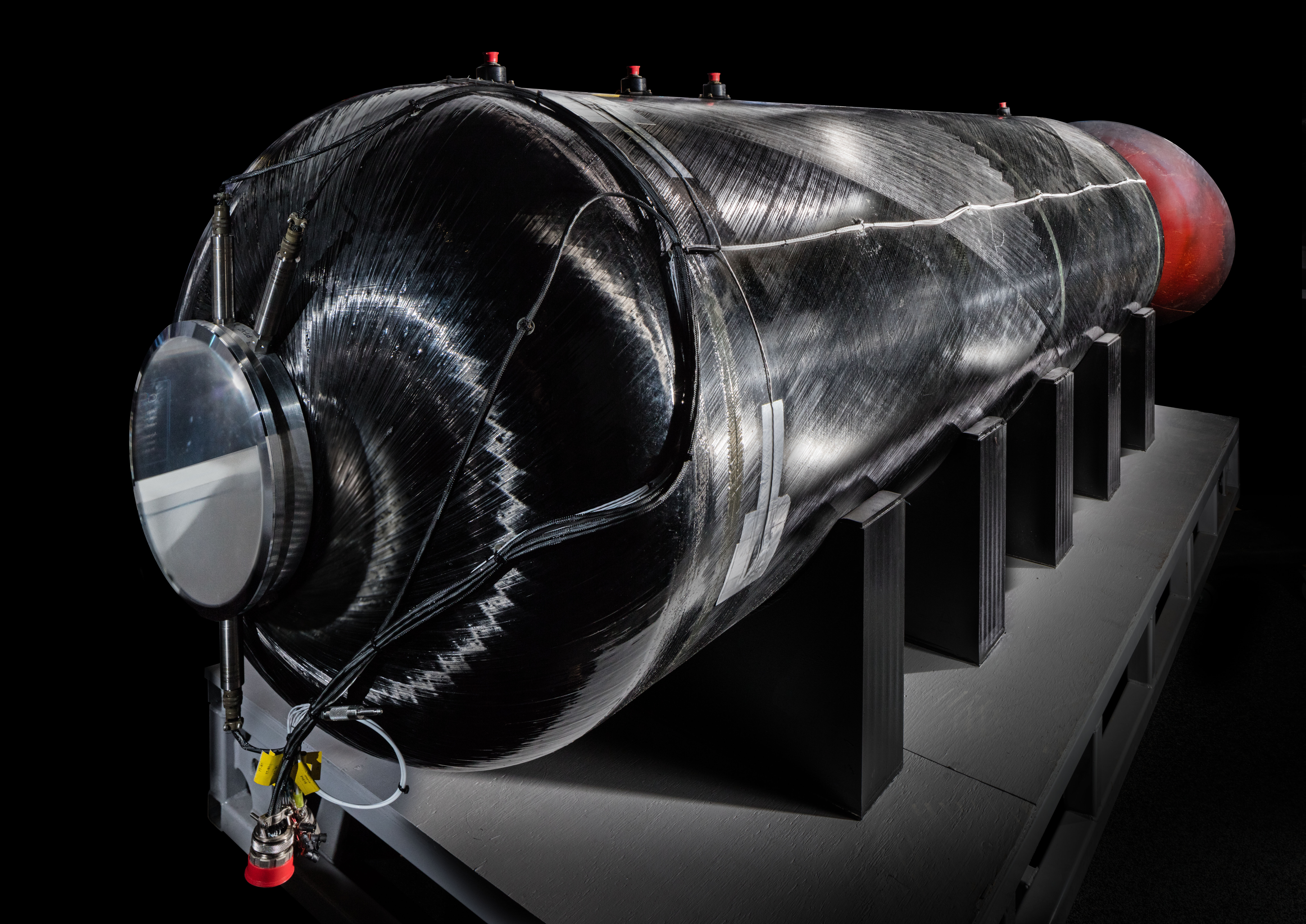 RocketMotorTwo is the hybrid engine that powered Virgin Galactic’s SpaceShipTwo, called VSS Unity, into space for the first time on December 13, 2018. This historic flight showcased Virgin Galactic’s newest vehicle, capable of carrying up to six passengers into space. RocketMotorTwo will eventually be displayed in the Futures of Space exhibition, scheduled to open in 2025 as part of the museum’s seven-year renovation.