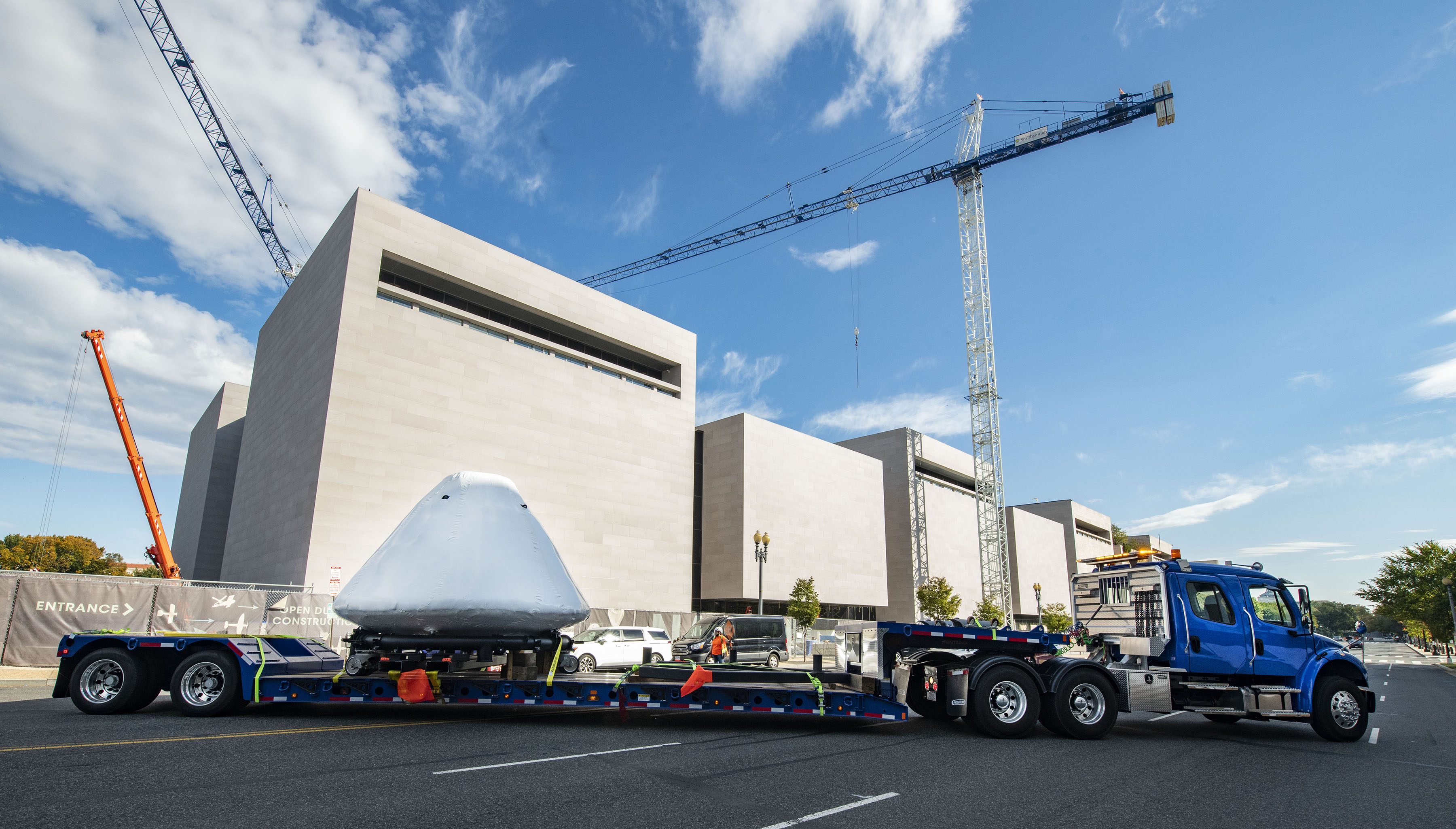 As the command module arrived at the Museum on the National Mall, Independence Avenue was cleared of vehicles for Columbia to arrive home.