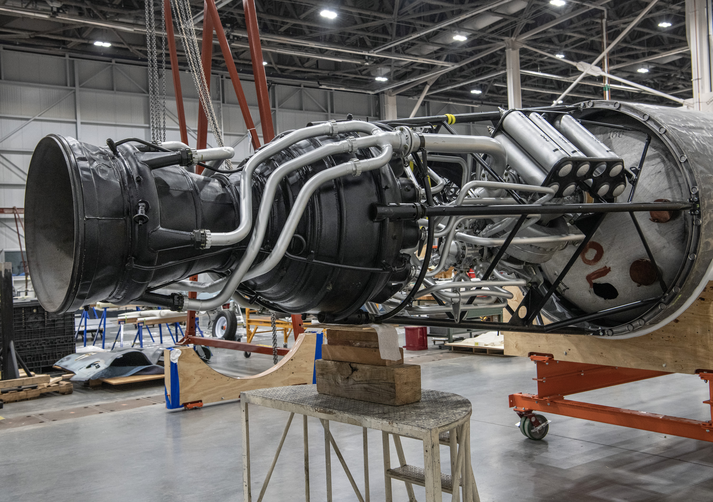In a successful fit test in spring 2023, the propulsion system was bolted to the replica ring on the center-section fuselage.