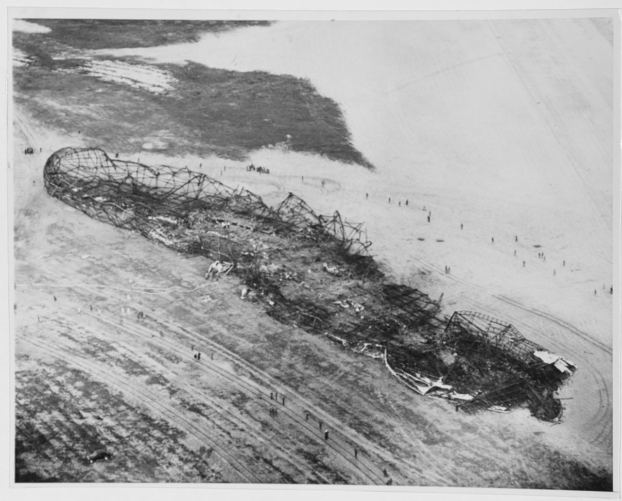 The Hindenburg airship wreckage at Naval Air Station Lakehurst, New Jersey. (Naval History and Heritage Command, NH 57971)