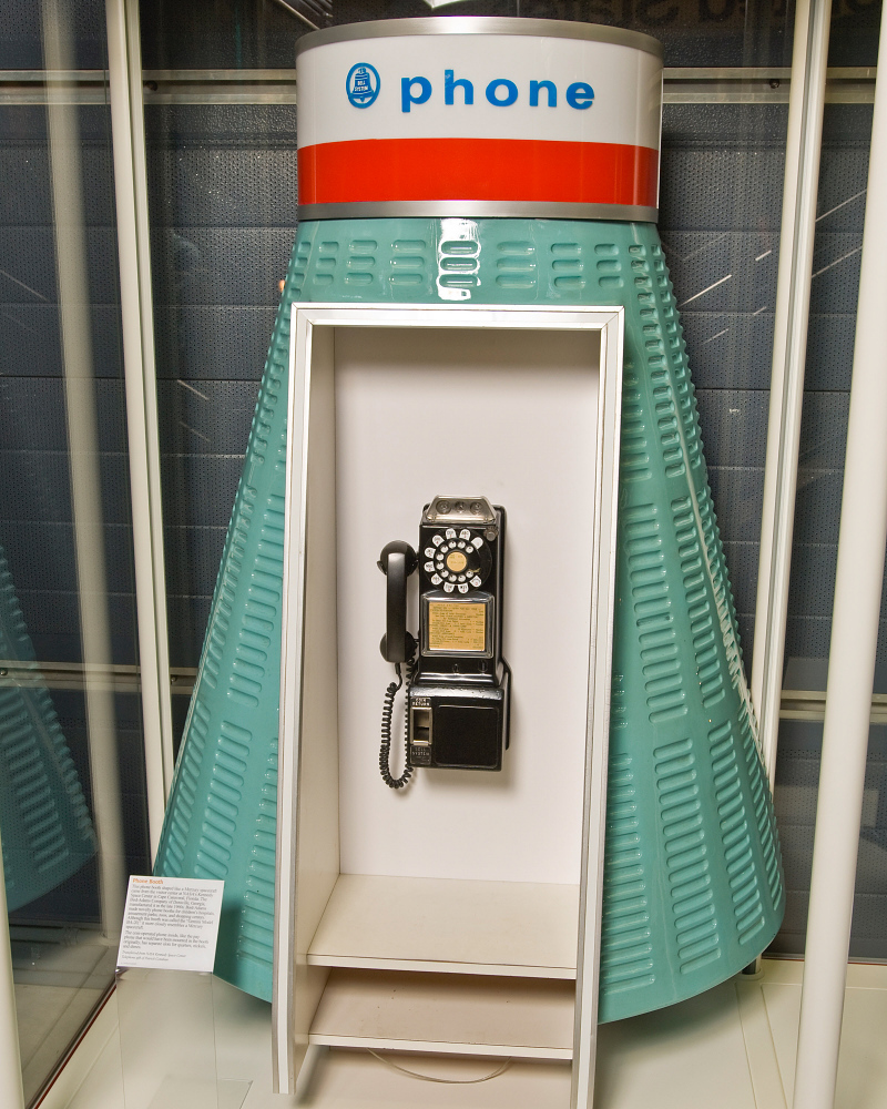 This phonebooth was installed at the Visitor Information Center at NASA’s Kennedy Space Center during the 1960s. (Smithsonian Institution)