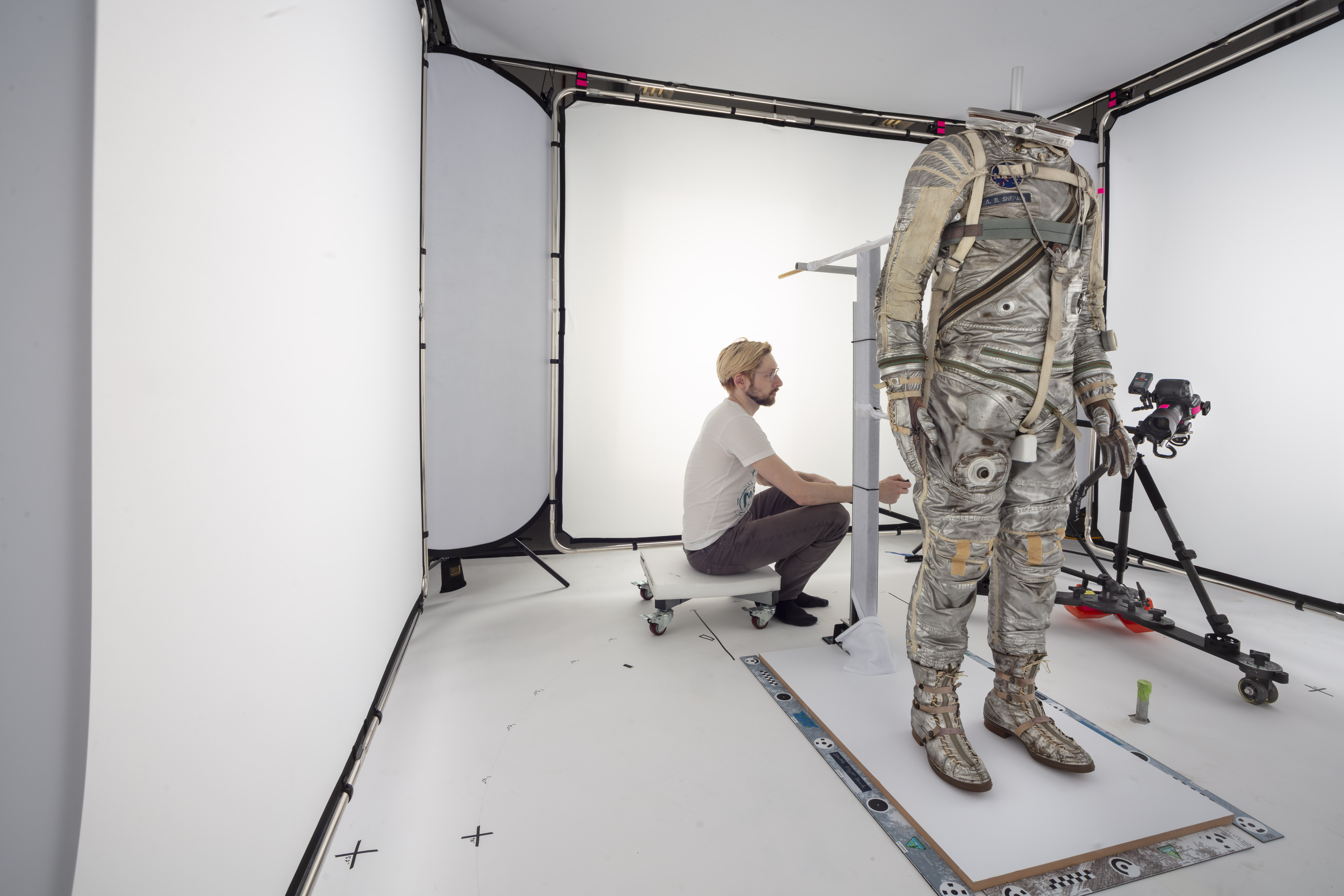 Smithsonian’s Digitization Program Office specialist Jon Blundell conducts photogrammetry in a large light box.