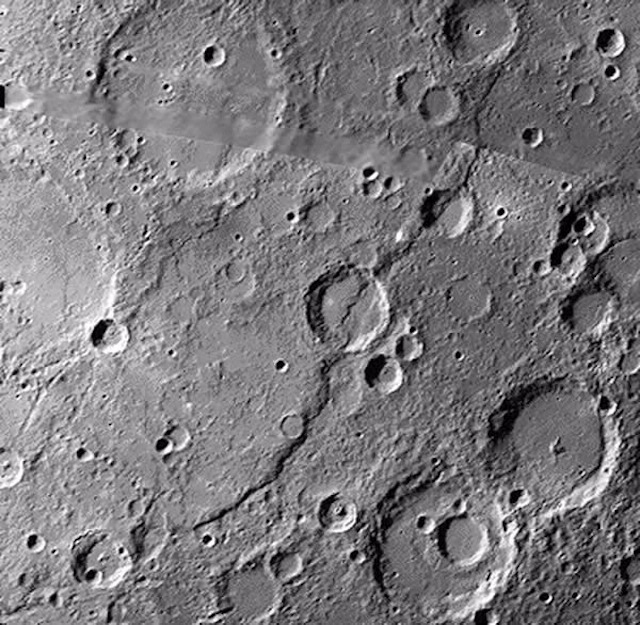 The largest known lobate scarp on Mercury is Discovery Rupes ("rupes" is Latin for cliff).