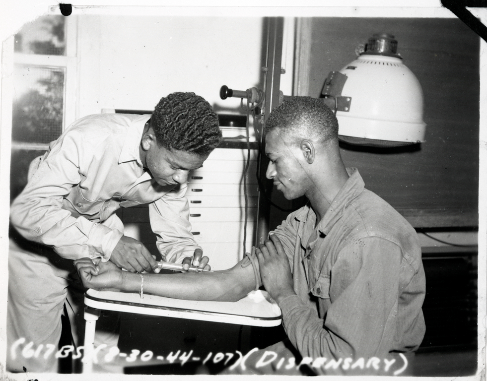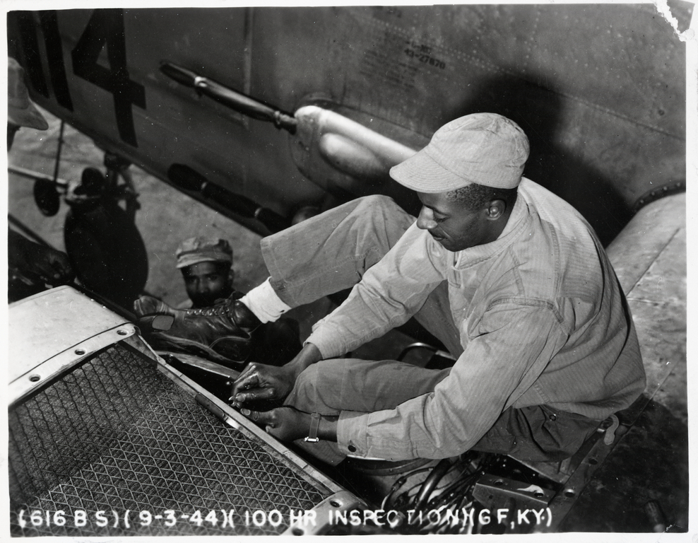 In 1982, the National Air and Space Museum opened the exhibit Black Wings: The American Black in Aviation and the companion book was published the next year. The exhibit relied heavily on donations of historical photographs, including a set of black and white copy US Army Air Force photographic negatives donated by Ahmed A. “Sammy” Rayner, Jr. These images, paired with Rayner’s remembrances of his time as a Tuskegee Airman, provide vivid examples of the daily lives of the 477th Bombardment Group and their training activities in the United States. His experiences as a Black officer and pilot later fueled his postwar political activity.